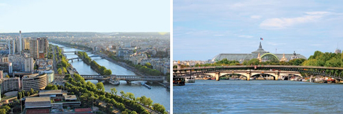 Sông Seine với những cây cầu bắc ngang cùng hàng loạt công trình kiến trúc nổi tiếng như tháp Eiffel, Gare de Lyon, Pont Alexandre III.