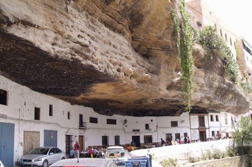 Thị trấn Setenil de las Bodegas ở Tây Ban Nha được xây chèn dưới phần nhô ra của những ngọn núi, trông ngôi làng giống như bị núi đá đè. Người dân của ngôi làng đã lựa chọn sống ngay trong các hang động dưới hẻm núi.
