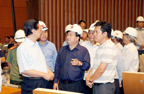 Báo cáo với Thủ tướng, Bộ trưởng Trịnh Đình Dũng cho biết: Đến nay công trình Nhà Quốc hội đã cơ bản hoàn thành. Đây là công trình phức tạp, yêu cầu kỹ thuật và mỹ thuật cao, do vậy trong giai đoạn hoàn thiện, Bộ Xây dựng đã chỉ đạo Ban QLDA chạy thử các hệ thống thường xuyên, tránh có những sai sót trong quá trình lắp đặt cũng như quá trình vận hành sau này.
