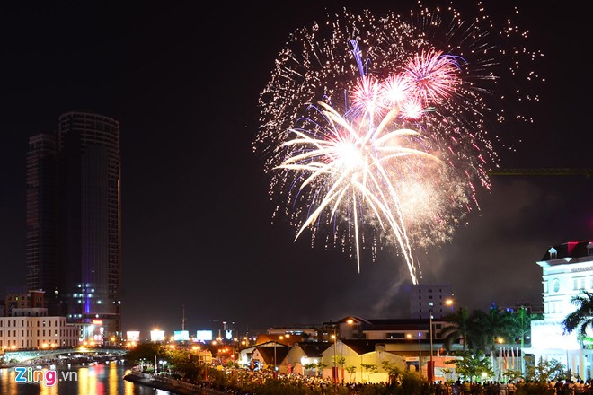 Thời gian pháo hoa rực sáng trên bầu trời Sài Gòn khoảng 15 phút (từ 21h đến 21h15).