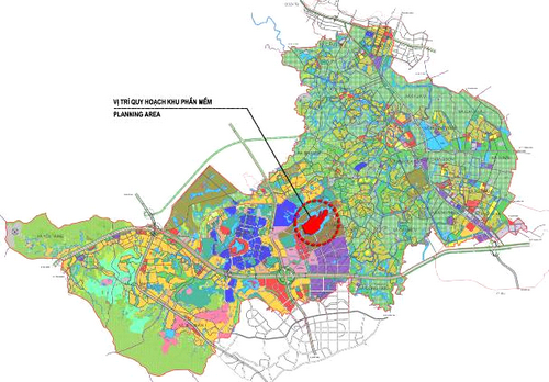 Trong đó, Khu phần mềm là khu vực tập trung các doanh nghiệp hoạt động trong lĩnh vực phần mềm và công nghệ thông tin, với hạ tầng kỹ thuật đồng bộ, hiện đại, kiến trúc cảnh quan hài hòa, thân thiện môi trường, đáp ứng đầy đủ nhu cầu của các nhà đầu tư sản xuất phần mềm, kinh doanh và cung cấp các dịch vụ sản xuất phần mềm. Khu phần mềm được quy hoạch và thiết kế bởi các chuyên gia đầu nghành về quy hoạch, xây dựng trong và ngoài nước như Công ty TNHH Group8Asia. Quy hoạch khu phần mềm này có diện tích hơn 70 ha, với hạ tầng đáp ứng cho khoảng 50.000 người làm việc. Hiện nay đã có các doanh nghiệp CNTT lớn như FPT, Bkav, Viettel, VNPT, VNG... tham hoạt động tại đây. Nơi đây được kỳ vọng sẽ trở thành thung lũng silicon của Việt Nam.